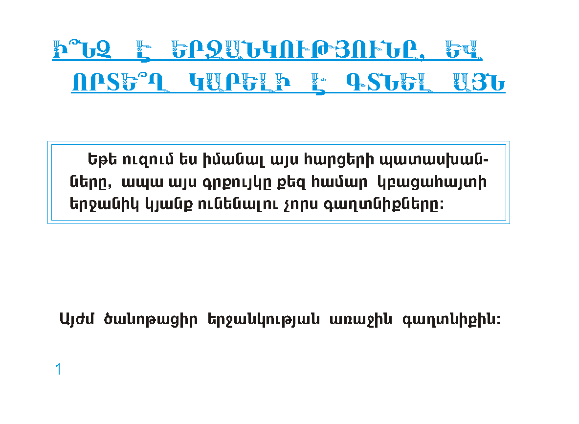 Երջանկության 4 գաղտնիքը «Երջանկության 4 գաղտնիք»-ի հեղինակային իրավունքները պատկանում են «Ջահ» զարգացման հիմնադրամին