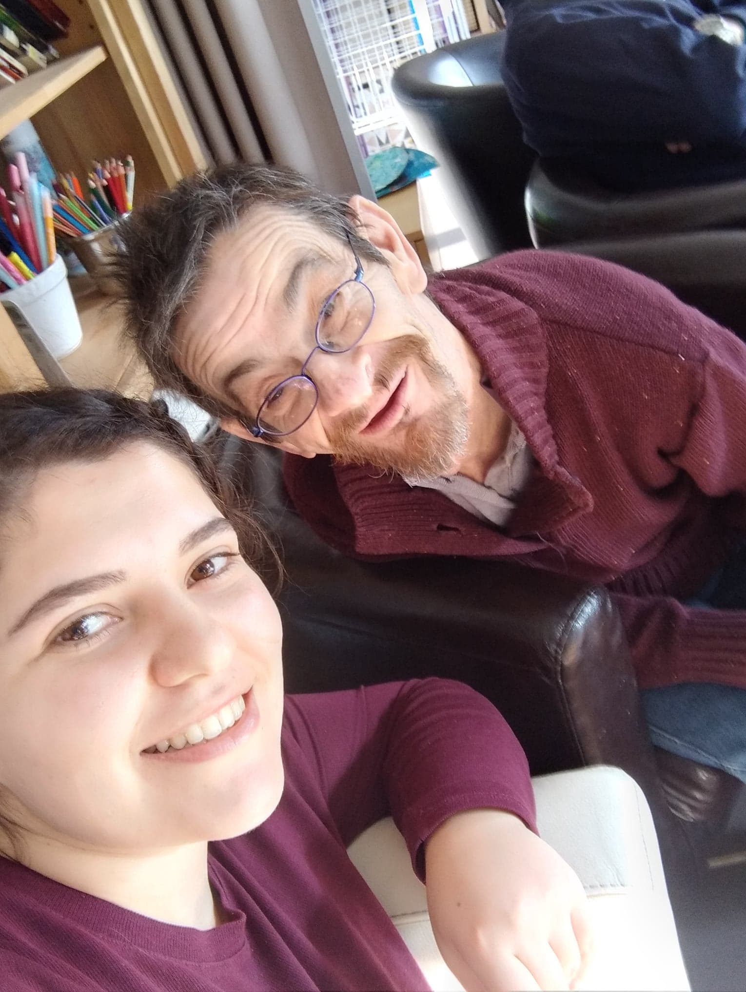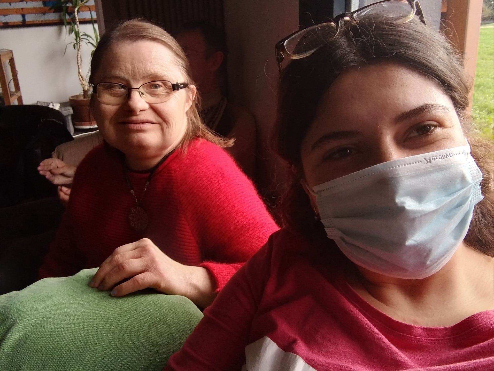 -Ես Անժելա Ջանվելյանն եմ։ 25 տարեկան եմ։ Եկել եմ Հայաստանից։ Ես այստեղ եմ որպես Service Civique International-ի կամավոր l'Arche d'Aigrefoin համայնքում։ Աշխատում եմ մտավոր հաշմանդամների հետ։